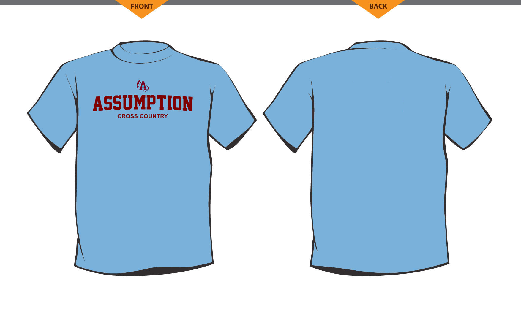 3. Sweatshirt: light blue fleece sweatshirt with full front 1 color design and optional last name on back (in maroon). There will be both a crew neck and a hoodie option for this sweatshirt.