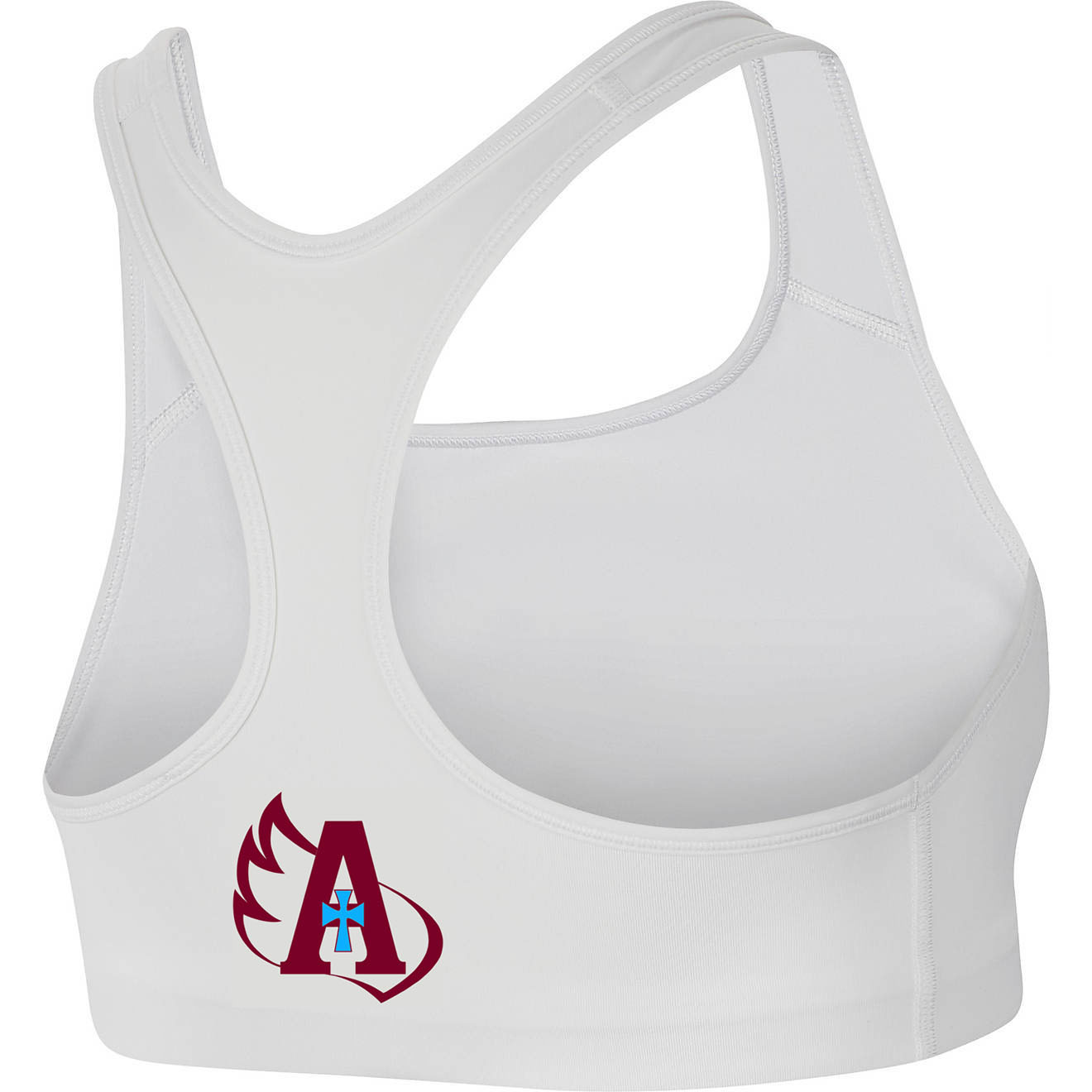6. Nike Sports Bra: white Nike sports bra with a 2 color logo on the back
